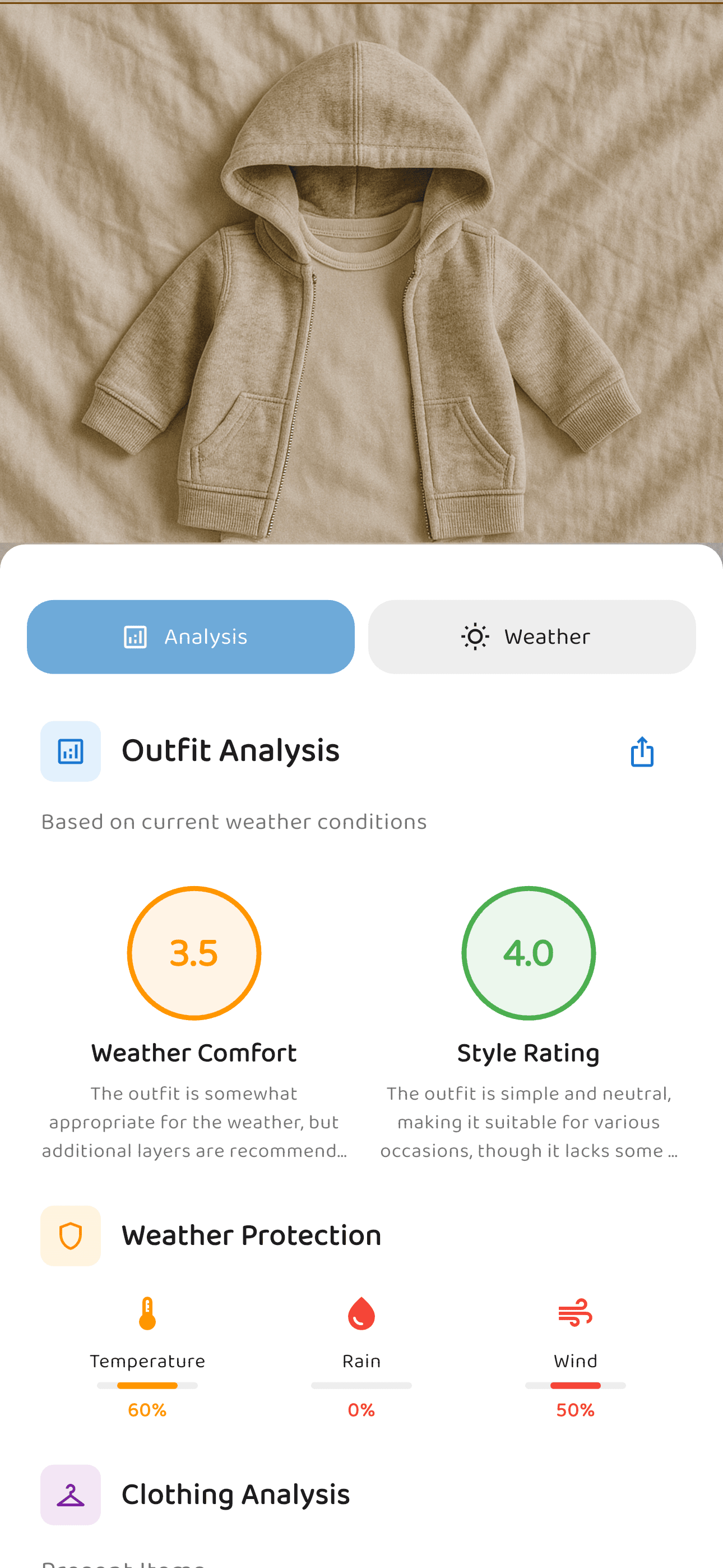 Discover how Tiny Weather combines real-time weather data with outfit analysis to make sure your child is dressed comfortably for any day.