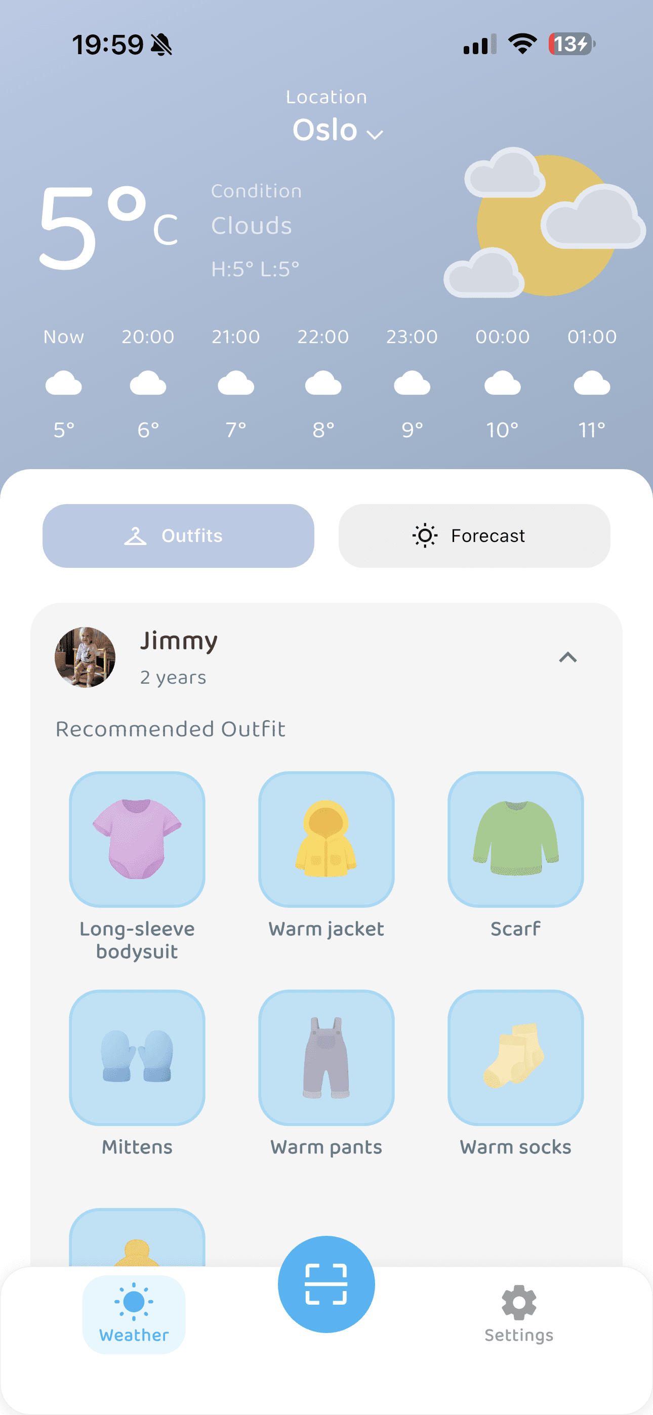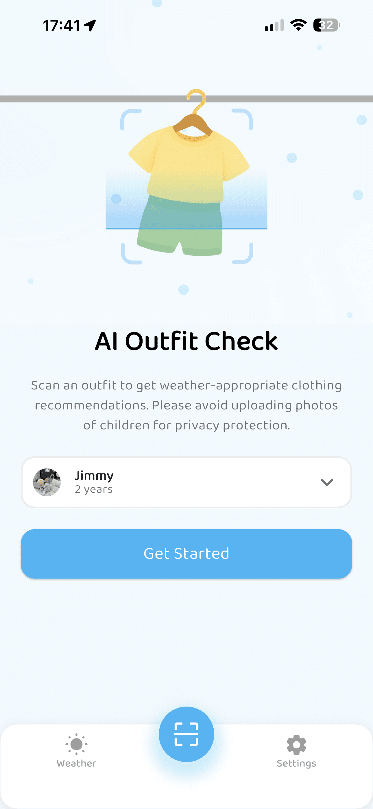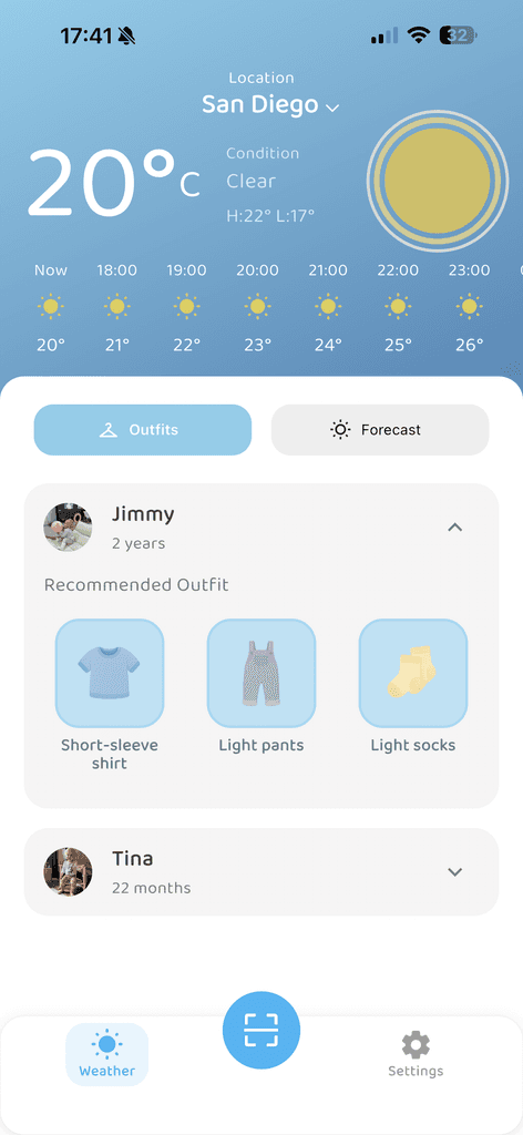 Tiny Weather uses advanced AI to analyze your child’s clothes and match them with real-time weather data, so you always get safe and reliable outfit recommendations.